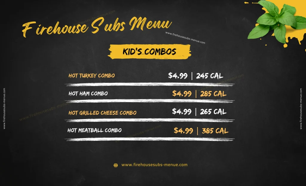 Looking for a fun meal for kids? The Firehouse Subs menu offers 4 tasty Kid’s Combos, including Hot Turkey, Hot Ham, Hot Grilled Cheese, and Hot Meatball. Each combo comes with a perfectly sized sub, a side, and a drink.